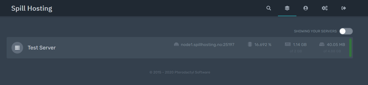 Når du har logget inn på kontrollpanelet, vil du få en oversikt over dine servere. Du kan velge en server ved å trykke på serveren.